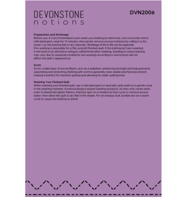 Machine or Hand Quilt up to 10 inches apart.