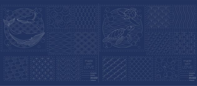 Ocean Sashiko Stitchery Panel – DV 4091 Navy